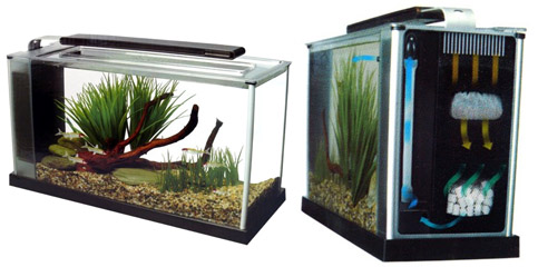 – filtre : bac de filtration intégré, séparé par la paroi arrière en verre acrylique haut de gamme avec récupération en surface.