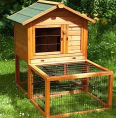Clapier pour lapin très pratique avec un enclos intégré, en pin de qualité avec un grillage particulièrement solide.