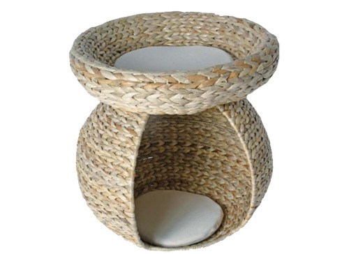 Igloo : Un couchage original et confortable avec un look très tendance, pour le bonheur de votre chat ! Cet igloo pour chats est entièrement modelé en feuilles de bananier tressées. Du jamais vu pour épater vos amis… Vous pourrez ainsi proposer à votre matou un couchage cosy et un poste d’observation en hauteur confortables grâce à des coussins amovibles en coton.