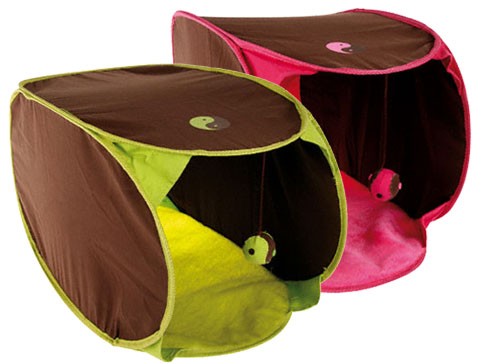 Magic Box : Les chats aussi aimeraient faire des cabanes dans lesquelles se cacher pour dormir ou pour guetter selon l’humeur. Pour aider le vôtre à concrétiser ce rêve, voilà la solution idéale : une petite boîte souple rectangulaire, dans laquelle votre chat peut se glisser tout à son aise. Et si l’envie lui en prend, rien ne l’empêche de se dégourdir un peu les pattes en jouant avec la balle suspendue à l’entrée de ce petit chez soi pour félin.
