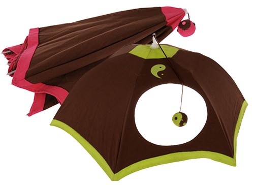 Magic Tent : Pas de mauvais œil ni de superstition populaire qui tiennent. Ouvrir cette drôle de tente-parapluie à l’intérieur ne pourra que porter chance à votre chat. Un toit sous lequel se reposer à l’abri des regards, une petite balle yin et yang pour boxer un peu, un look rigolo et harmonieux, de quoi chanter sous la pluie s’il le fallait. Pratique et original, cet abri pour chat peut être transporté facilement. Indispensable.